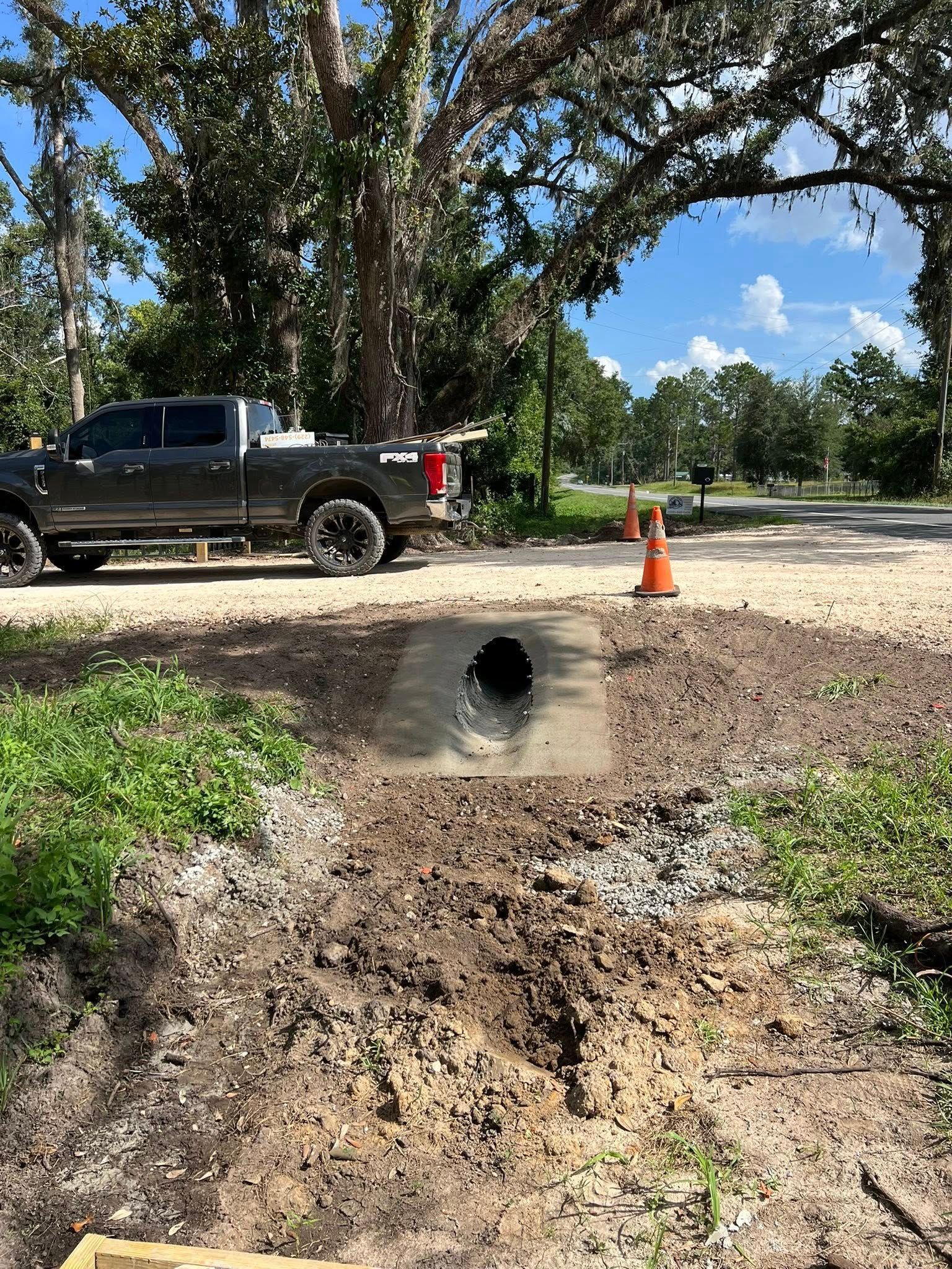 The work begins with evaluating the volume of water that flows through the area, the slope of the land, and the soil conditions that affect how the culvert will be embedded and supported. Pipes are typically corrugated metal or plastic, chosen based on load requirements and expected flow rates. After the culvert is placed, fill material is compacted around and over it to create a stable roadbed that won't settle or shift under vehicle weight. In North Florida, where sudden downpours can overwhelm small or poorly placed culverts, the right diameter and alignment are critical to preventing washouts and erosion.